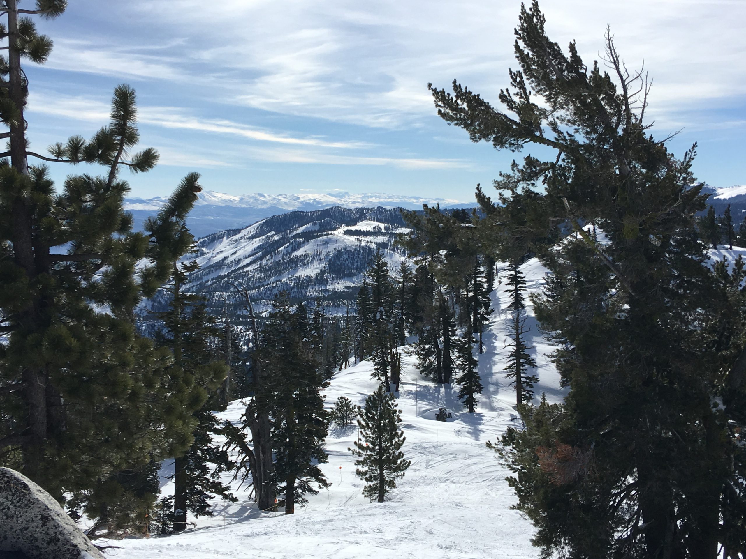 今冬は積雪が例年より多く、リノ・タホ―周辺のスキー場はどこもここ数年来久々の抜群のゲレンデ・コンディション。お天気と気温がマイルドな日を選び Diamond Peak Ski Resort へ。リノからMt.Rose Hwyのシーニック・ドライブを経てタホ湖もチラ見しながらスキー場へ。結構な降雪があった日から5日を経ていて道路はチェーン規制もなくクリアで安心ドライブ。リノ市内から小一時間もかからないでした。