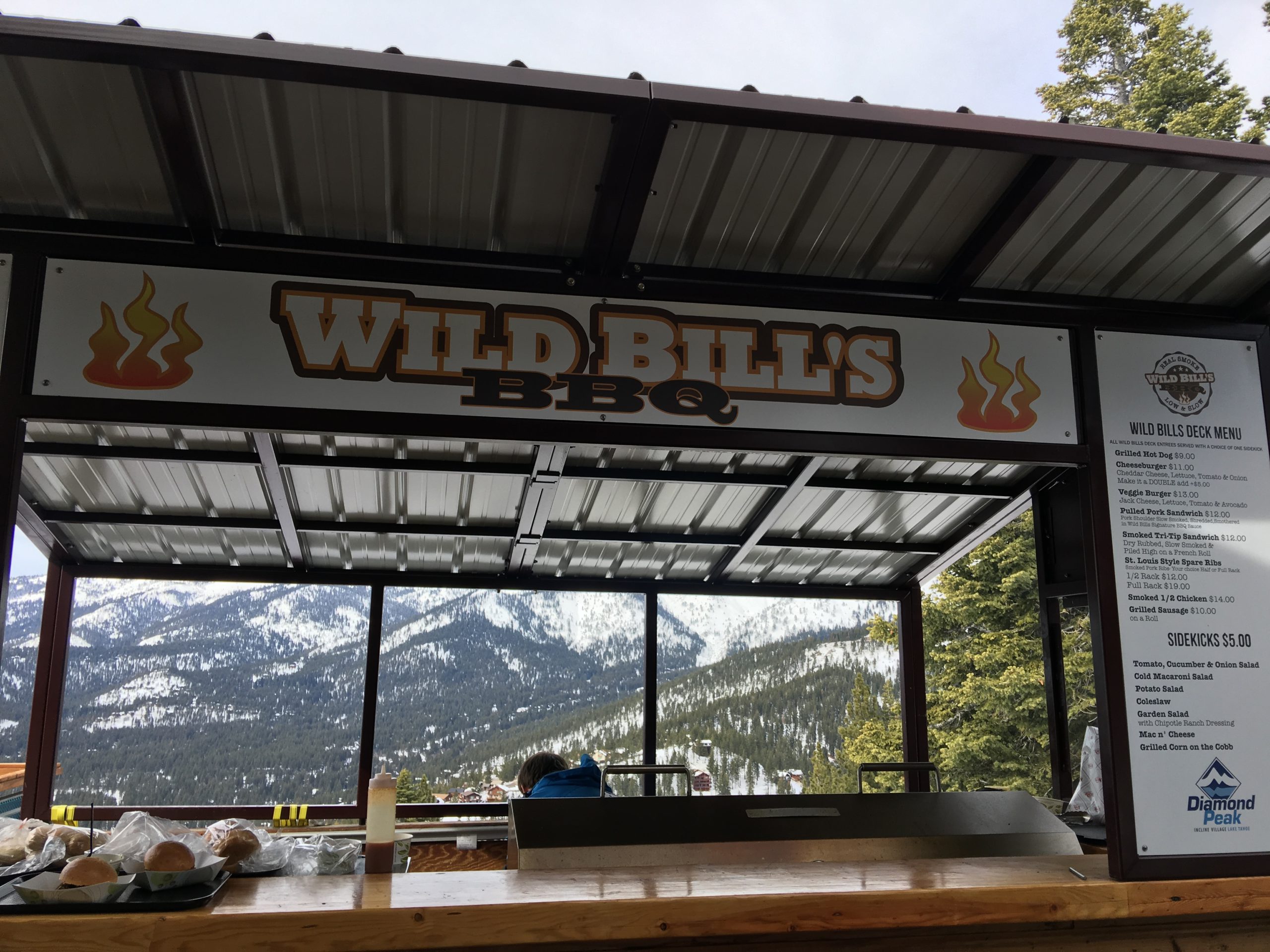 山の中腹裾にあるこのSnowflake Lodgeはこちらもロッジといっても宿泊施設ではなくカフェテリア兼休憩所でここからの眺望はそれはそれは素晴らしい紺碧のタホ湖ビュー!スキーはともかく、この景色を見にだけにでも来たいとおもわせるレイクビューです。ここは朝はガラガラでしたがランチ時分は食事の購買は長蛇の列&テーブルは争奪戦、とかなり混む激戦区となります。週末はここでBBQランチも販売してます。