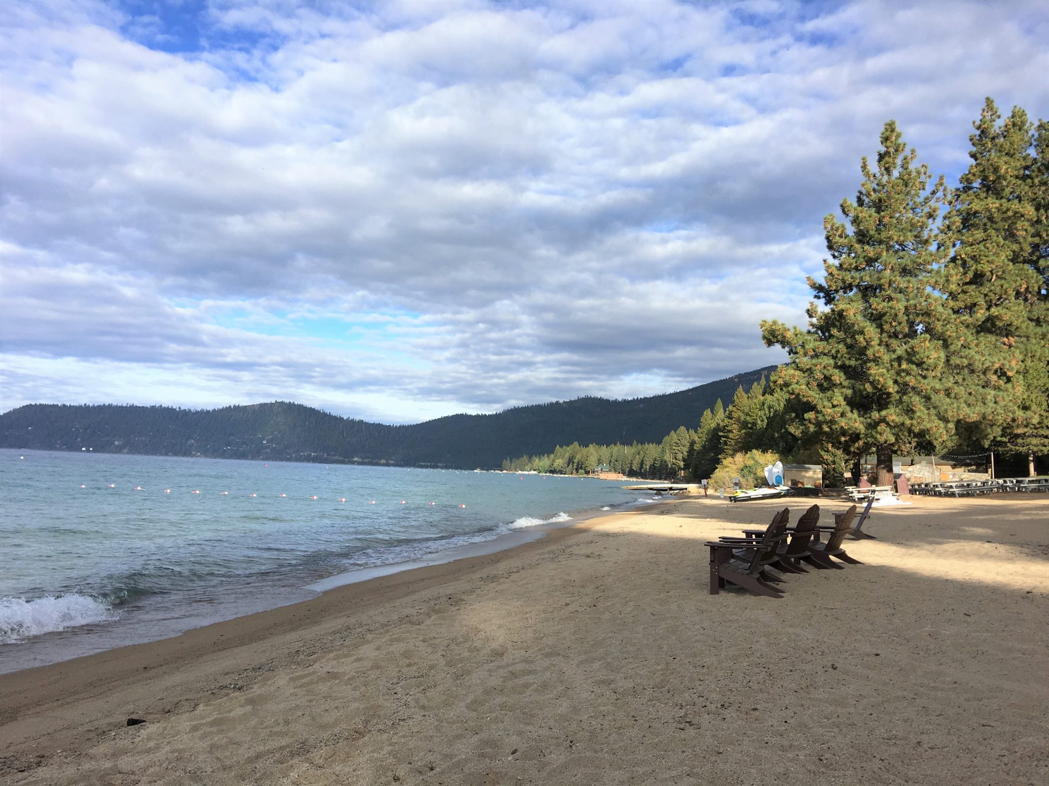 ぐっすりと良い睡眠がとれた一夜が明けた翌朝のタホ湖。空気も湖水も清んでて爽快です。