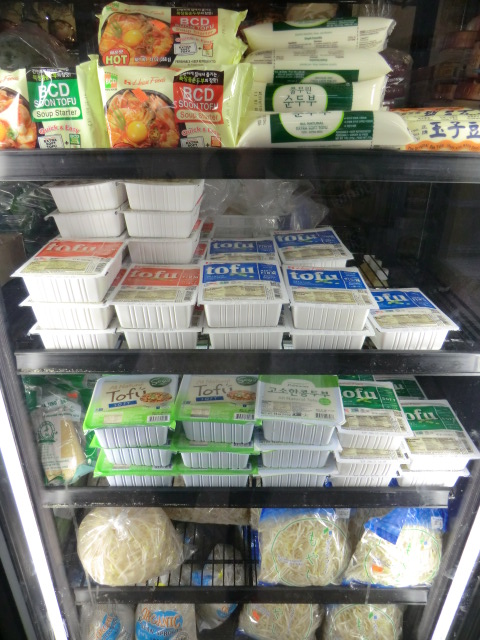 お豆腐はハウス製品の豆腐と韓国ブランド豆腐があります。キムチや韓国系お惣菜はお店の自家製です。